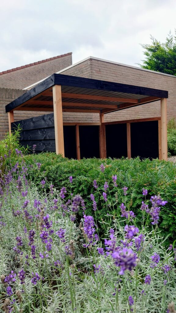 Wij mochten een nieuwe fietsenschuur installeren in deze super mooie tuin in Valkenswaard. Het model ROME in de twee kleuren uitvoering (duotone). Het eindresultaat is heel mooi en het schuurtje stond perfect op zijn plek.