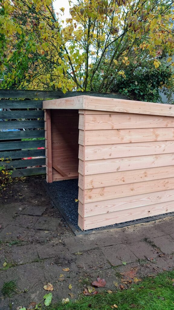 Het fietsenschuurtje model HAARLEM is klein maar fijn, simpel & praktisch. Voor deze klant in Nijmegen hebben wij eerst een splitfundering gemaakt. Dit geeft een goede stabiele en vlakke ondergrond waarop het fietsenschuurtje geïnstalleerd kan worden. Het model HAARLEM is heel subtiel en staat in elke voortuin. Deze uitvoering in blank hout geeft de fietsenschuur een natuurlijke uitstraling.